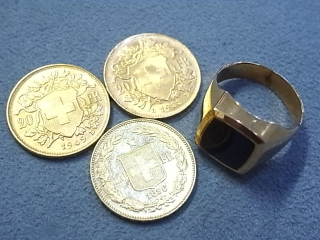 スイス20フラン金貨 (K21.6金)3枚やK18金リング/指輪 |