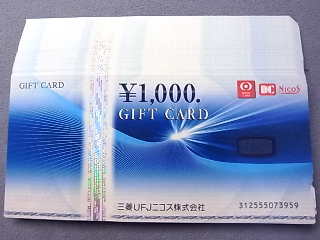 三菱UFJニコスギフトカード1000円券×50枚を額面の96%でお買取りさせて頂きました!