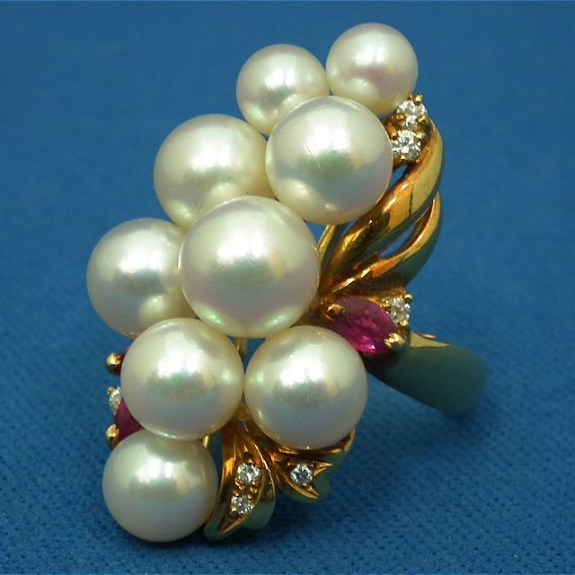 奈良市学園大和町よりご来店!パール ルビー ダイヤ付 K18金 デザインリング 指輪を買取させて頂きました!