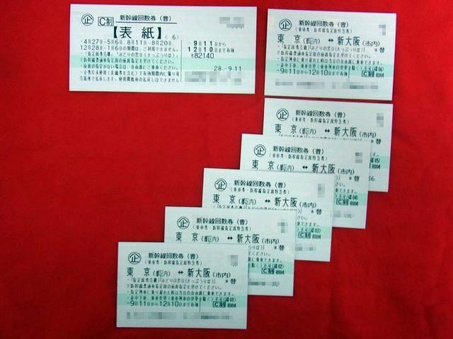 新幹線回数券 東京-新大阪[指定](6枚綴り表紙付き発行最新)お買取りしました。