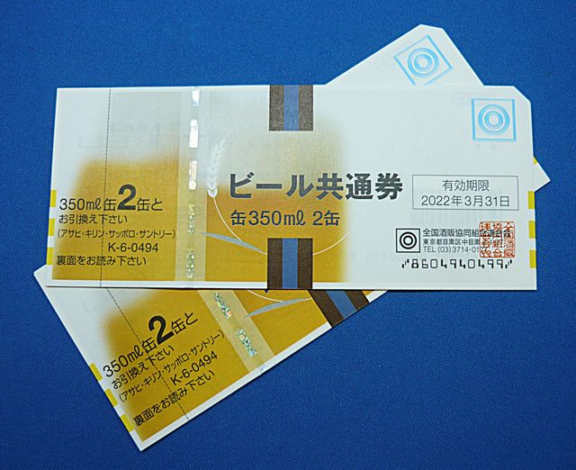 | 買取商品名 | ビール共通券 缶350ml 2缶 × 10枚 |