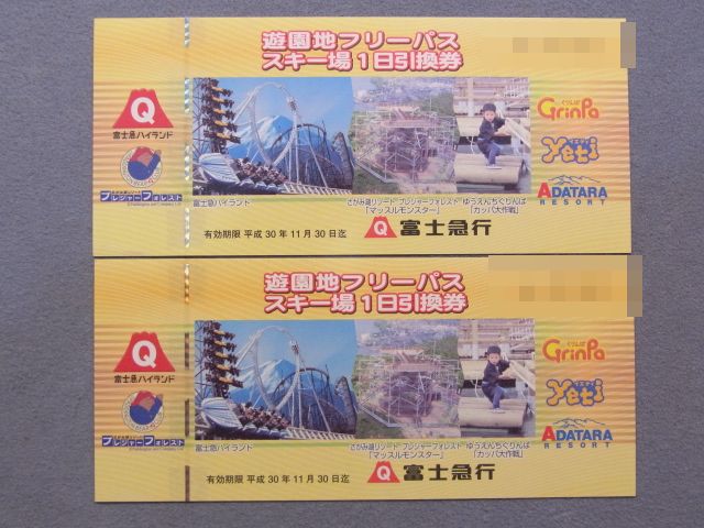 小田原市よりお越しのお客様から富士急行 株主優待券【遊園地フリーパス/スキー場1日引換券】をお買取させて頂きました!少ない枚数でもご遠慮なくどうぞ!