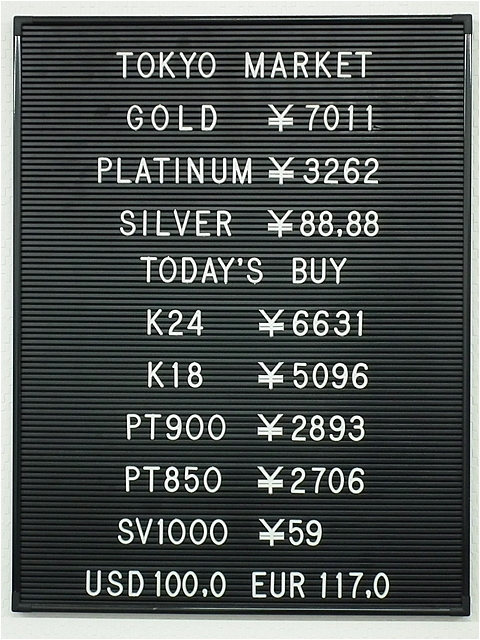 手数料、査定料、分析料などは一切不要!0.1gから買取可能です。是非ご利用ください!