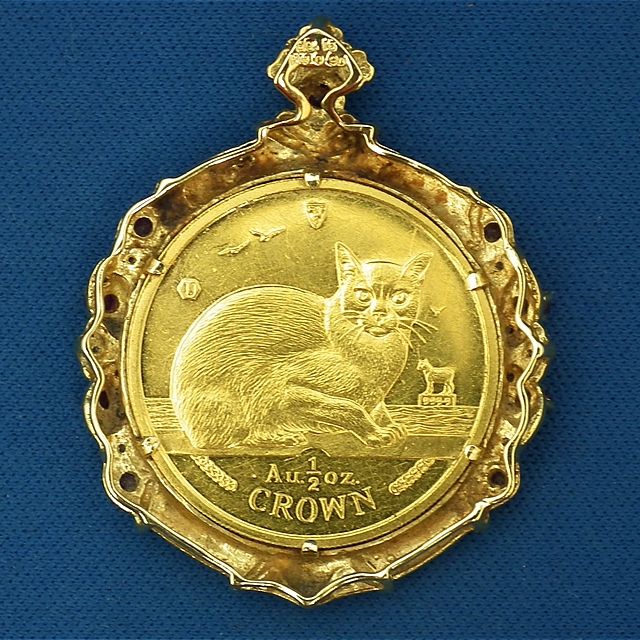 生駒市上町よりご来店!K24純金 マン島 キャットコイン 1/2oz 金貨付ペンダントトップを買取させて頂きました!