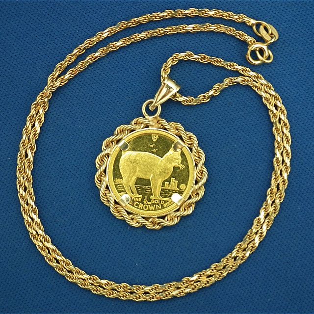 奈良市中山町西よりご来店!K24純金 マン島キャットコイン金貨付ペンダントネックレスを買取させて頂きました!