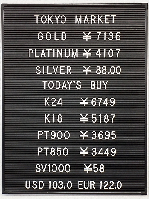 プラチナ相場も上昇中!4100円を超えています!地域NO1の価格で高価買取しています!是非お持込ください!