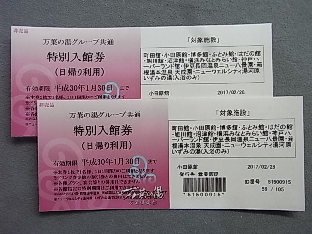小田原市よりお越しのお客様から大磯ロングビーチ入場招待券3枚をお買取りさせて頂きました!