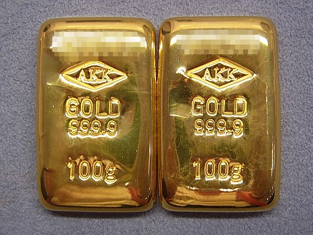 | 買取商品名 | アサヒプリテック製 K24純金/9999 インゴット100gx2本 |