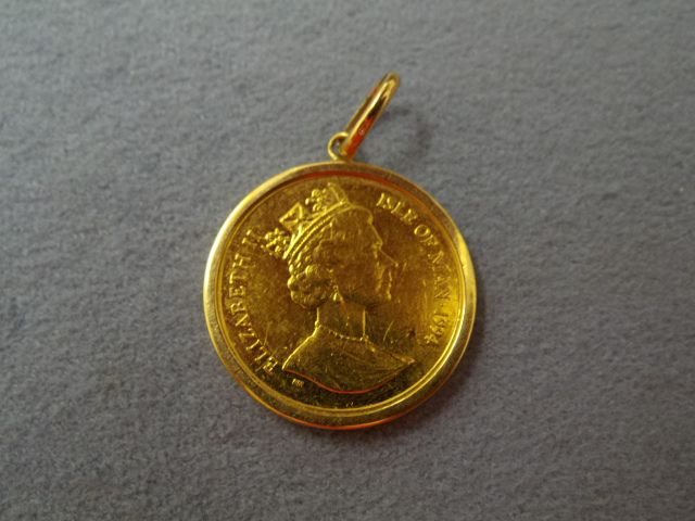 生駒郡斑鳩町からお越しのお客様よりK24純金 マン島 キャットコイン 1/25oz 金貨付ペンダントトップを買取させて頂きました!