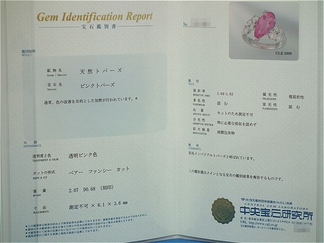 | 石 | ピンクトパーズ ダイヤ |