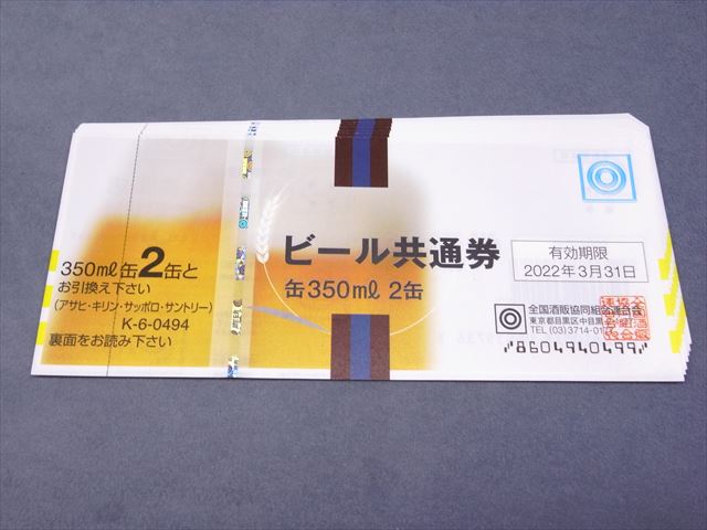 ビール共通券(缶350ml2缶)10枚をお買取させて頂きました!