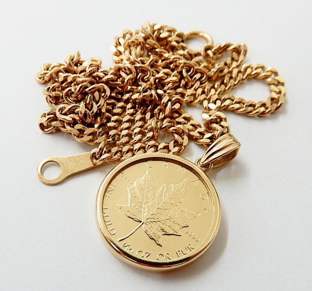 <金相場高騰中>厚別区大谷地のお客様からK24金 メイプルリーフ金貨付 K18金枠ペンダントトップお買取り致しました!