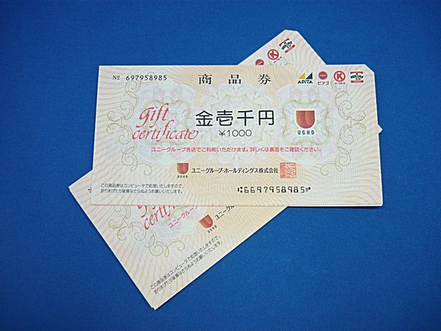 | 買取商品名 | ユニーグループホールディングス 商品券 1000円 × 20枚 |