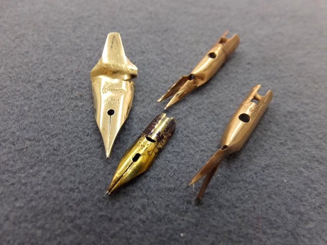 卒業や入学でいただいた万年筆のペン先です。パーカーやモンブラン等色々ありますね。ペン先でも構いませんし、万年筆ごとお持ちいただいても大丈夫です。思わぬ収入になるかもしれませんね。査定料は掛かりませんので、お気軽にいらしてください。
