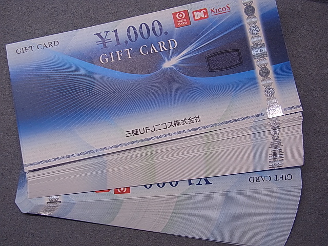 三菱UFJニコスギフトカード1000円券100枚を額面の96%にてお買取りさせて頂きました!