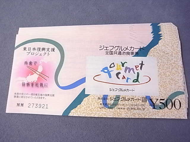| 買取商品 | 全国共通お食事券ジェフグルメカード500円券 |