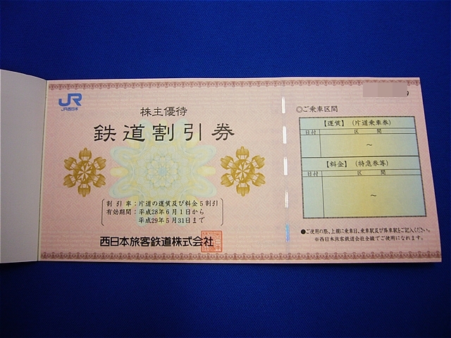 奈良県 香芝市からお越しのお客様より、JR西日本の株主優待割引券をお買取させて頂きました!