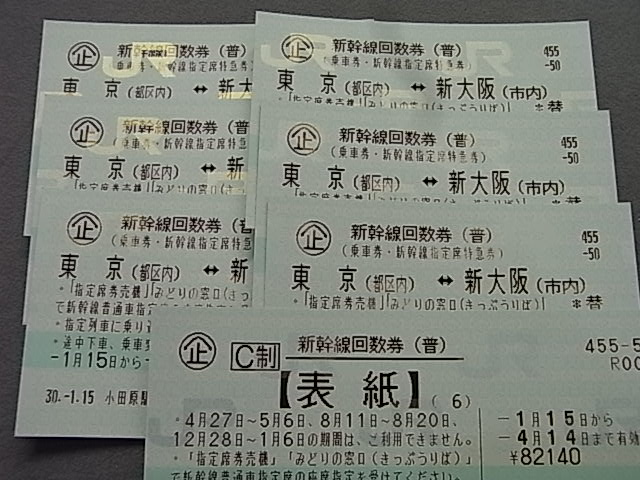 小田原市よりお越しのお客様から新幹線回数券(東京-新大阪)6枚をお買取させて頂きました!