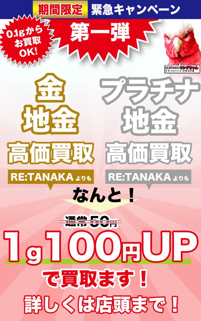 伊東市よりご来店! 【緊急キャンペーン】各種貴金属 を RE:TANAKA” より1g100円UP で現金買取させていただきました!!