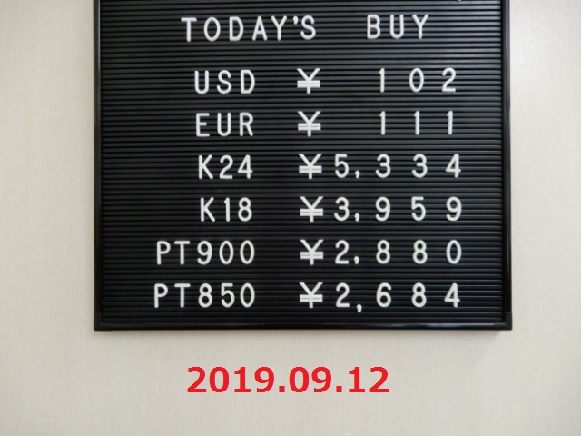 | 買取価格 | 3,959円 / g(2019.09.12 価格) |