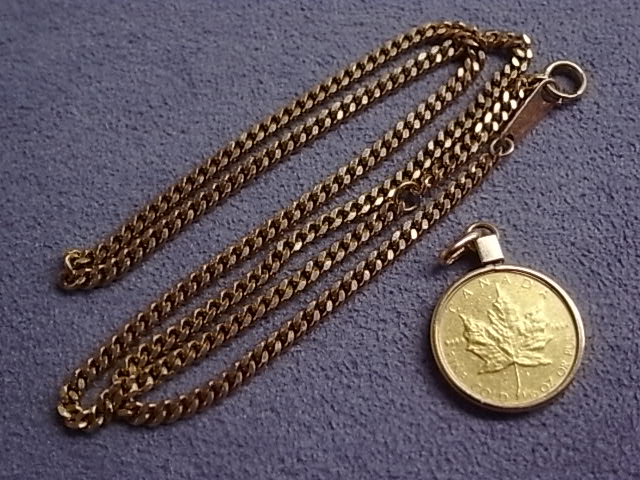 | 買取商品名 | K24純金 カナダメイプルリーフ1/10oz金貨付ペンダントトップ/喜平ネックレス |