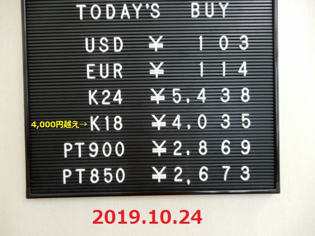 | 買取価格 | 5,438円 / g(2019.10.24 価格) |